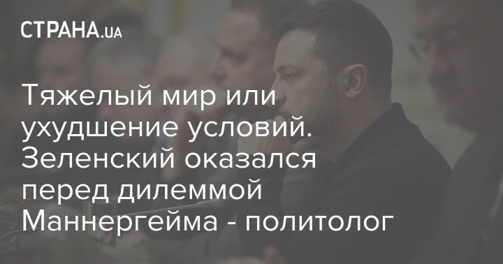 Президент України Володимир Зеленський стоїть перед дилемою фінського лідера Карла Густава Маннергейма у 1940 та 1944 роках: прийняти несправедливий мир, зберігши людей та країну з перспективою її розвитку, або продовжувати воювати і опинитися згодом у ще гіршій ситуації та отримати ще гірші умови завершення війни, ніж зараз.