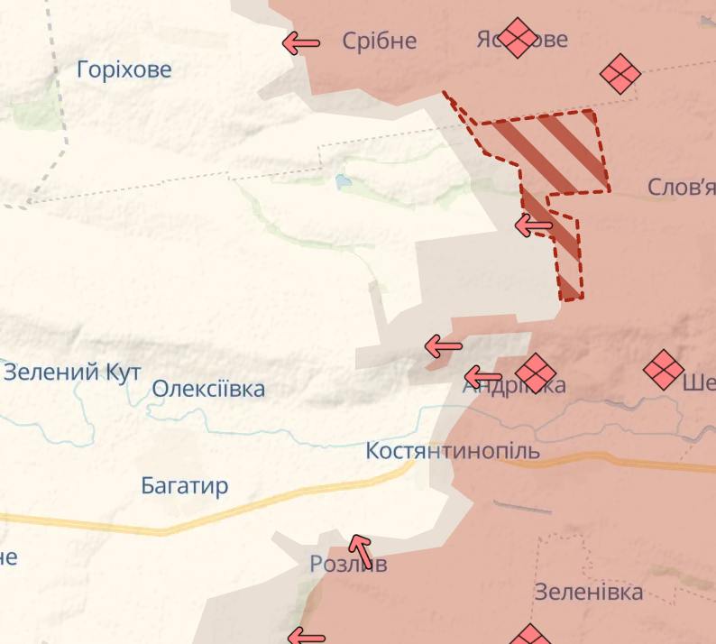 Армія РФ просунулася на північ від Константинополя на Курахівському напрямку, а також біля траси на південь від Торецька. Про це повідомляє військовий паблік Deep State.