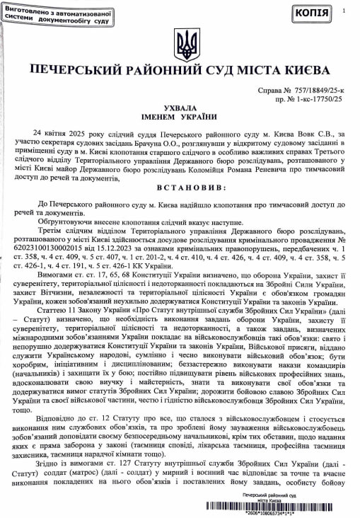 Про це повідомляють ЗМІ з посиланням на ухвалу Печерського районного суду Києва від 24 квітня 2025 року.