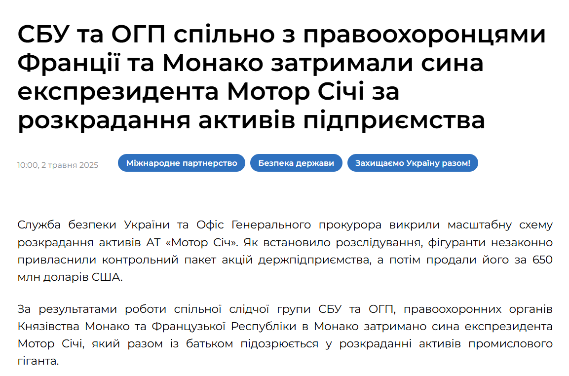 У Монако затримали сина екс-президента "Мотор Січі" В'ячеслава Богуслаєва – Олександра за підозрою у розкраданні активів підприємства.