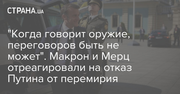 "Президент України Володимир Зеленський взяв на себе зобов'язання, не ставлячи жодних умов. Тепер ми очікуємо на таку ж чітку відповідь від Росії. Не може бути переговорів, коли каже зброя. Не може бути діалогу, коли в той же час бомбардують мирних жителів. Зараз потрібно припинення вогню, щоб переговори могли розпочатися", - написав Макрон.