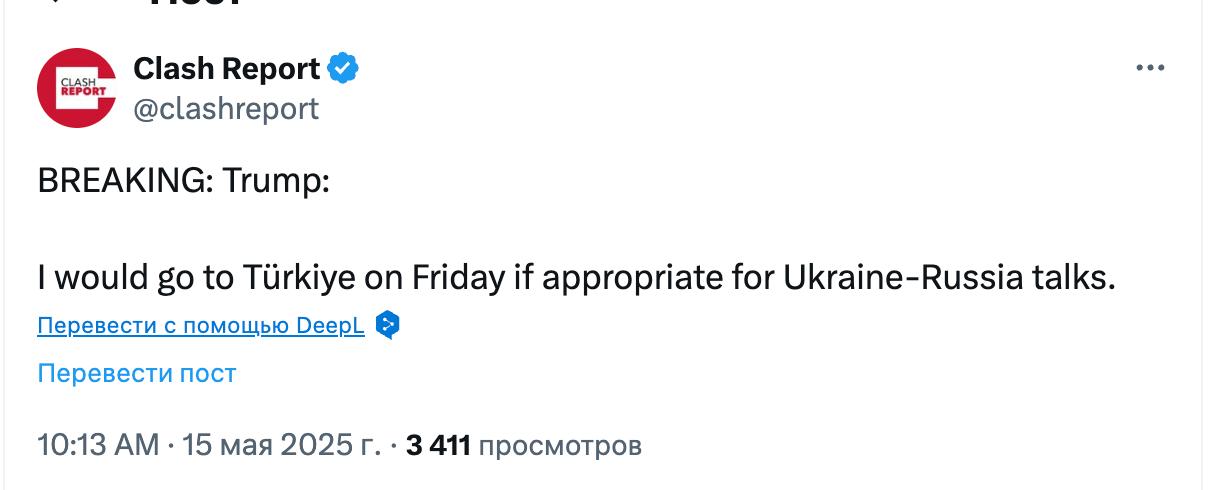 Раніше Трамп заявив, що "поїхав би до Туреччини у п'ятницю, якби це було доречно для переговорів між Україною та Росією".