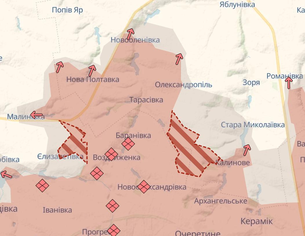 15.09 Армія РФ продовжує просування на ділянці між Покровськом та Торецьком, свідчить карта Deep State.