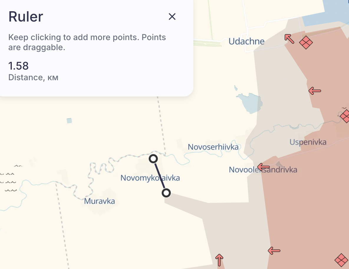 Але, судячи з карти DeepState, росіяни істотно просунулися в Новоолександрівці, що біля кордону з Дніпропетровською областю, на південний захід від Покровська "Сіра зона" (тобто лінія фронту) після цього наблизилася до адміністративного кордону, до якого залишилося трохи більше півтора кілометра.