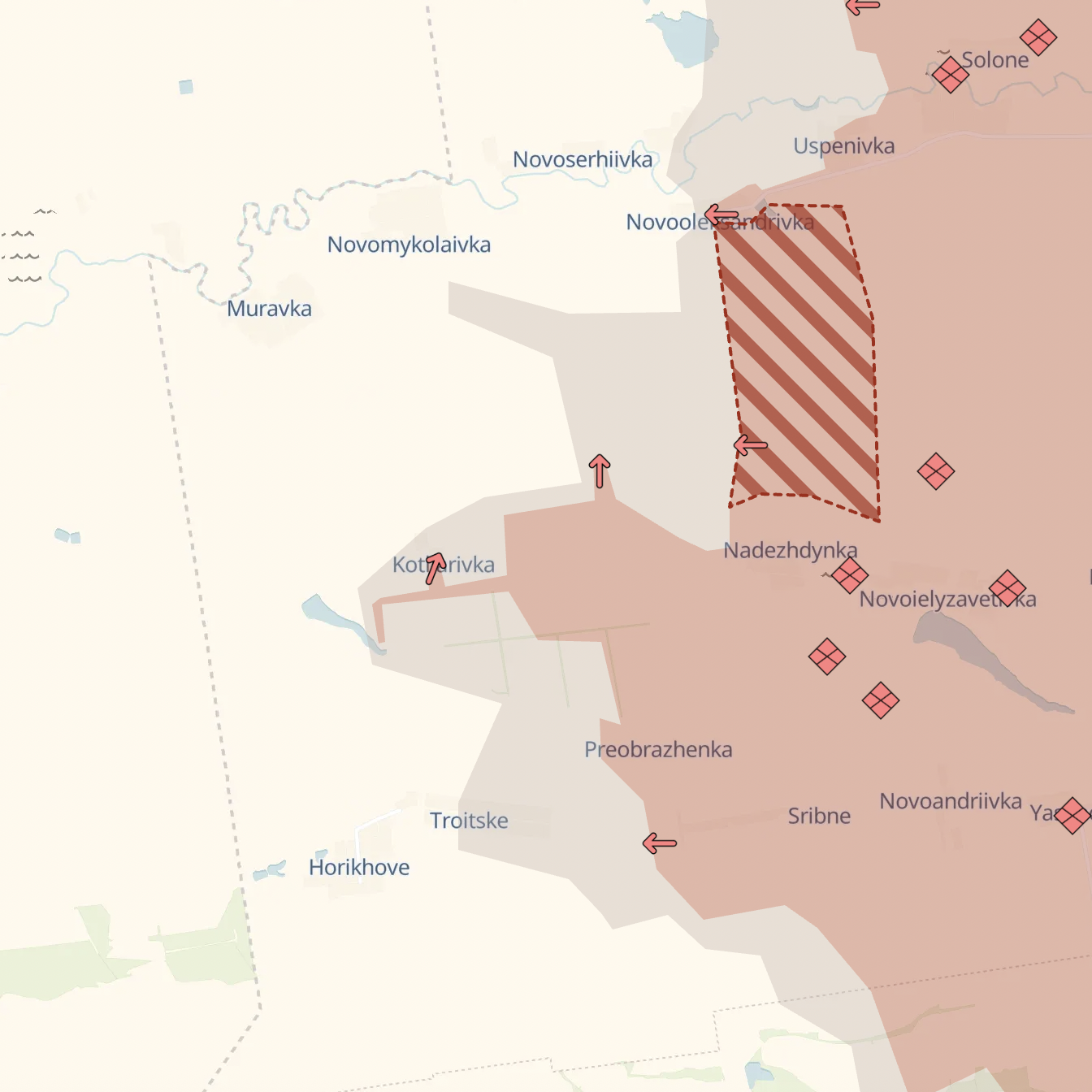 Вони просунулися ще на північ від траси на Покровськ, "сіра зона" наблизилася до села Попов Яр, про штурм якого вчора повідомляли російські паблики на схід бої підійшли до села Зоря.