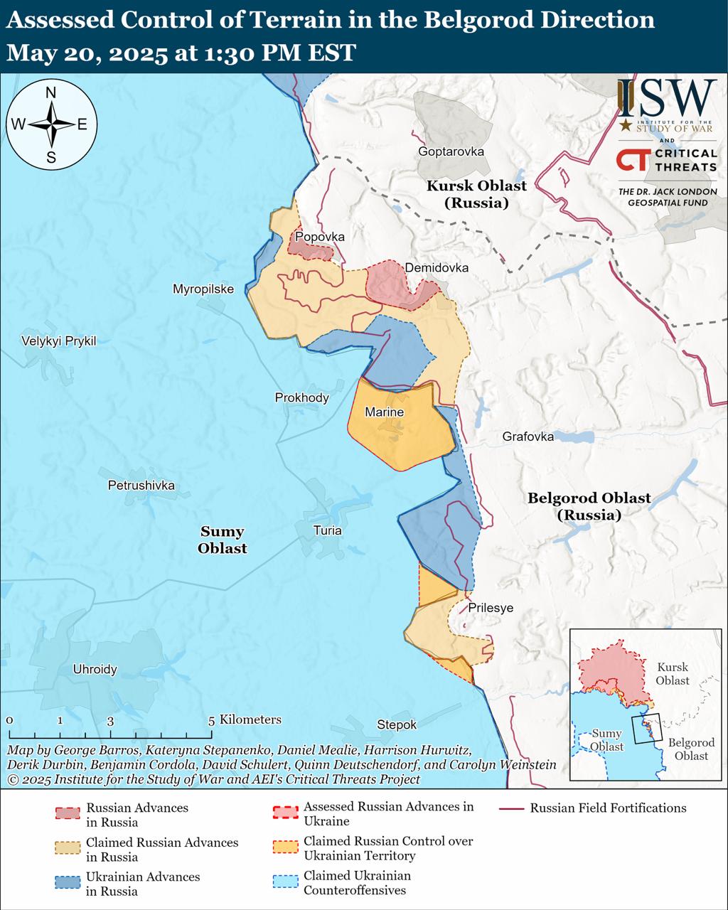 В останньому зведенні американського "Інституту вивчення війни" йдеться про те, що вони просунулися в південно-західній частині Локні (поруч із трасою Суми - Суджа) і захопили поля на захід від села.