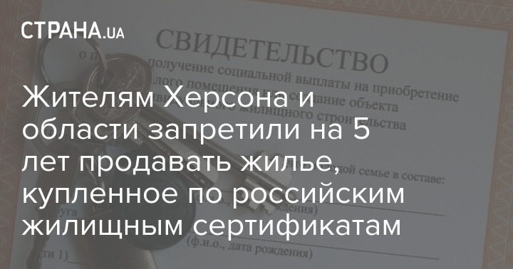 У Росії набрав чинності закон, який забороняє жителям Херсона та Херсонської області протягом перших п'яти років продавати житло, куплене за програмою державних житлових сертифікатів (ДЖС).