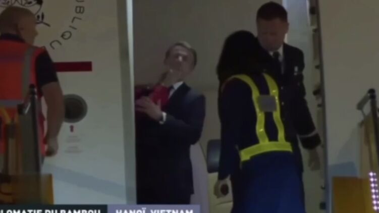 Після посадки у В'єтнамі, на відео потрапило, як президент Франції отримує ляпаса перед виходом на трап.