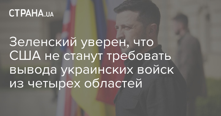 Президент України Володимир Зеленський вважає, що США не закликатимуть Україну погодитися на виведення військ із чотирьох областей, як вимагає Росія.