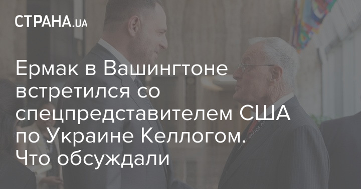 Глава Офісу президента (ОП) Андрій Єрмак у Вашингтоні зустрівся зі спеціальним представником США щодо України Кітом Келлогом.