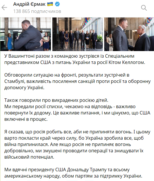 Нагадаємо, голова Офісу президента Андрій Єрмак перебуває з візитом до США. Основне його завдання – переконати Білий дім у тому, що Росія своїми умовами меморандуму зриває мирні переговори, а тому потрібно на неї натиснути через посилення санкцій, а також продовжити військову допомогу Україні.