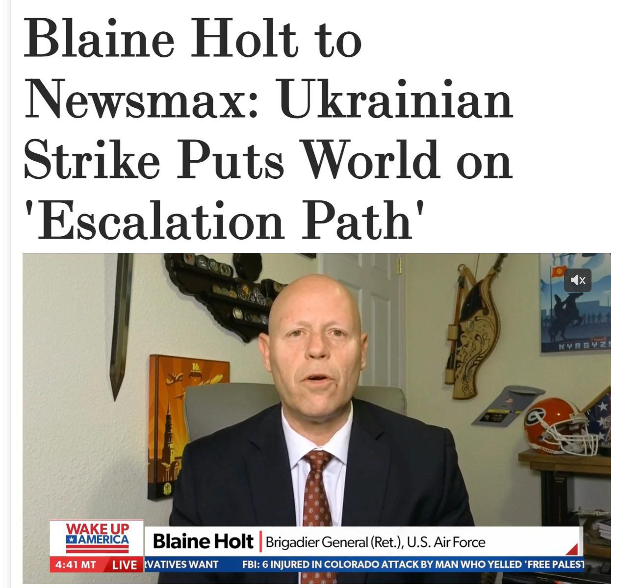 Атака українських безпілотників поставила світ на "шлях ескалації". Про це заявив відставний генерал ВПС Блейн Холт, близький до республіканців телеканалу Newsmax.