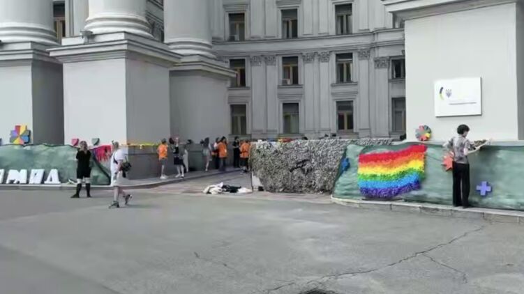 Периметр оточений поліцією. Біля будівлі МЗС у Києві розпочалася акція ЛГБТ. Відео