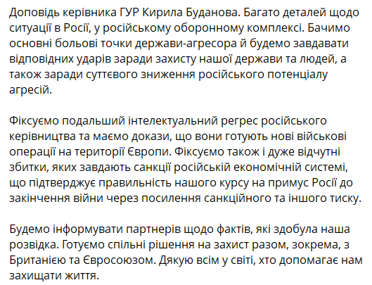 За його словами, було зафіксовано "подальший інтелектуальний регрес російського керівництва та докази того, що вони готують нові військові операції на території Європи".