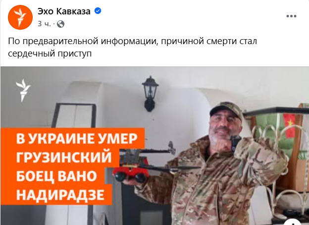В Україні від серцевого нападу помер доброволець Вано Надірадзе.