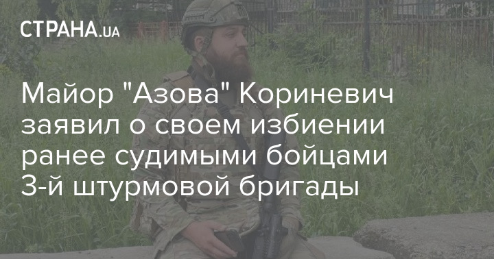 Майор бригади Нацгвардії спеціального призначення "Азова" Андрій Кориневич із позивним Корінь заявив, що його побили бійці 3-ї штурмової бригади.