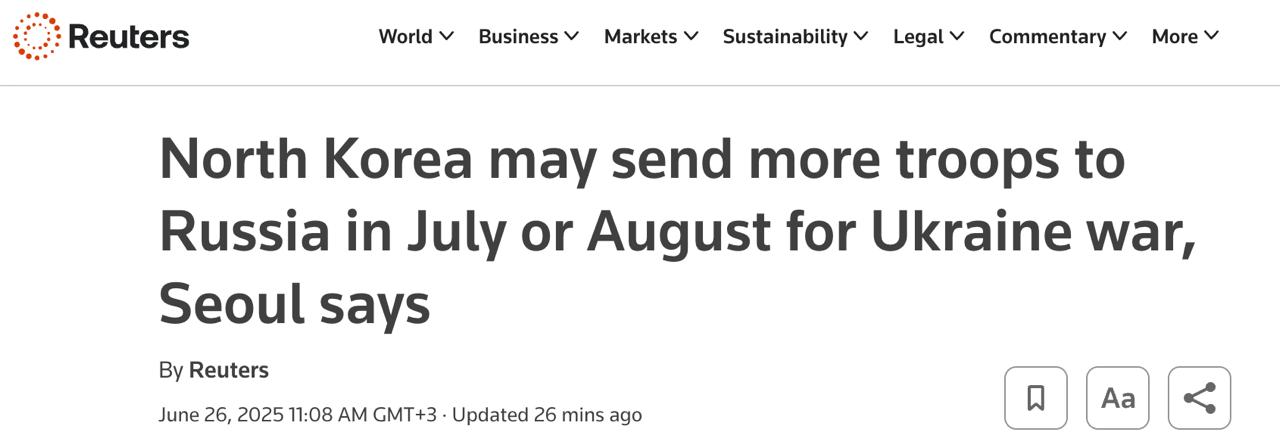 Корейська Народно-Демократична Республіка може відправити додаткові війська до Росії для війни з Україною у найближчі два місяці.