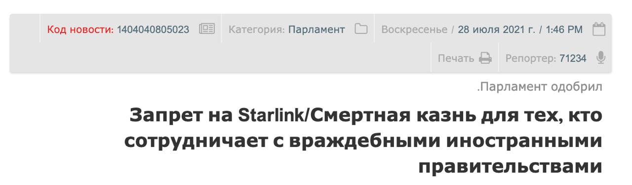 За використання, купівлю, продаж, імпорт, виробництво та розповсюдження "з наміром протистояти системі" будь-яких інтернет-засобів та комунікаційних пристроїв, які не пройшли внутрішню сертифікацію, включаючи обладнання Starlink, світитиме штраф, удари батогом або навіть тюремне ув'язнення до двох років, зазначає DPA.