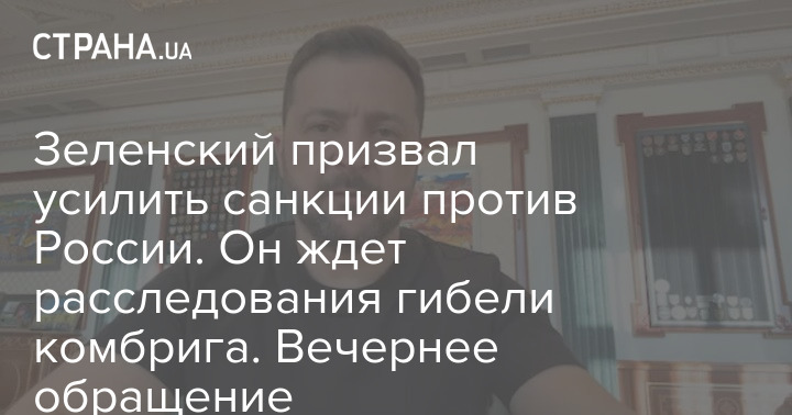 Зеленський закликав посилити санкції проти Росії. Він чекає на розслідування загибелі комбрига. Вечірнє звернення