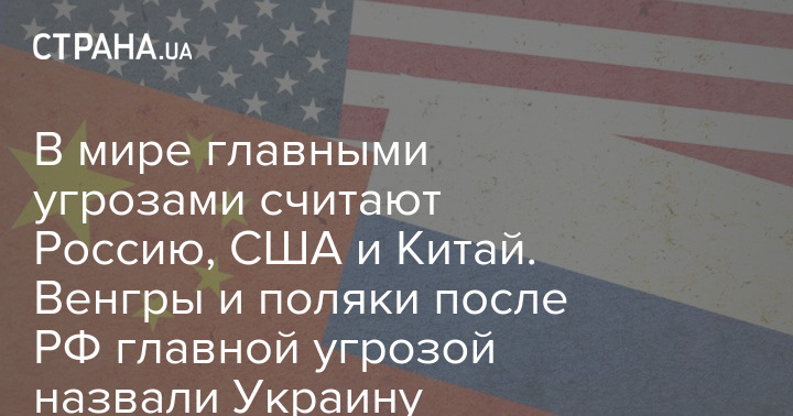 Загалом по всьому світу найчастіше називають загрозою три країни: США, Росію та Китай. У Європі майже всі країни вважають головною загрозою Росію, крім Іспанії, де основною загрозою вважають США, та Греції, де на першому місці перебуває Туреччина.