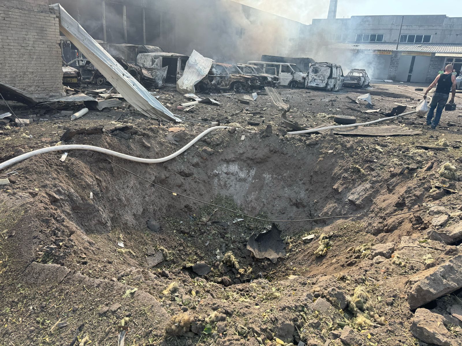 "Влучання по центральній частині, в районі автовокзалу. Пошкоджені торгівельний комплекс, СТО, навчальний заклад та адмінбудівля", - написав він.