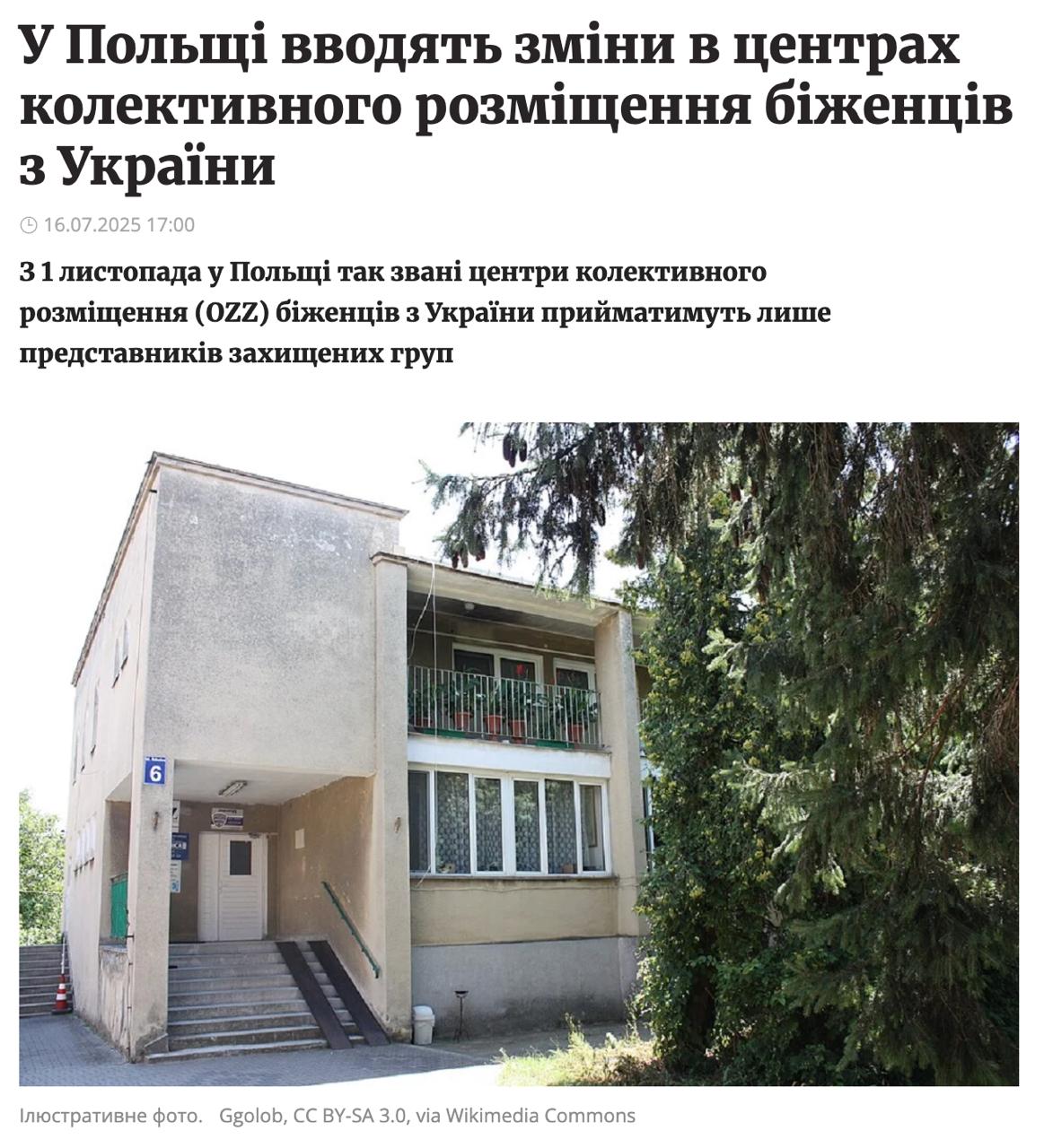 У Польщі з 1 листопада центри колективного розміщення (OZZ) прийматимуть лише українських біженців із захищених груп: пенсіонерів, вагітних жінок та людей з інвалідністю.