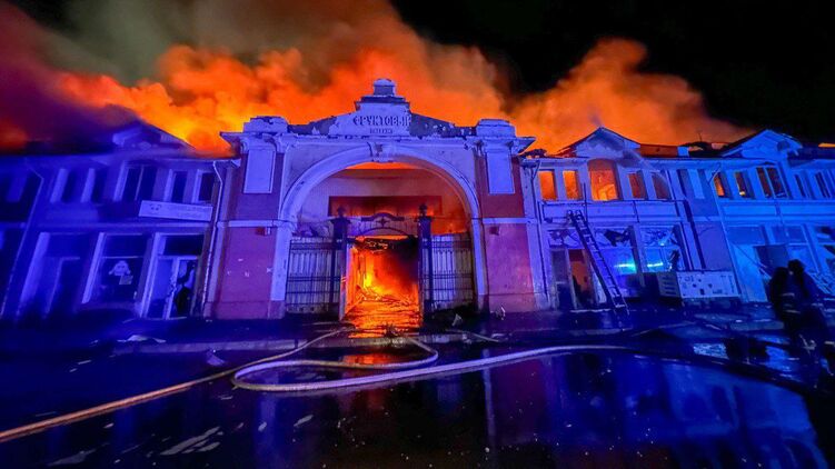"Привіз", що горить, в Одесі після нічного обстрілу