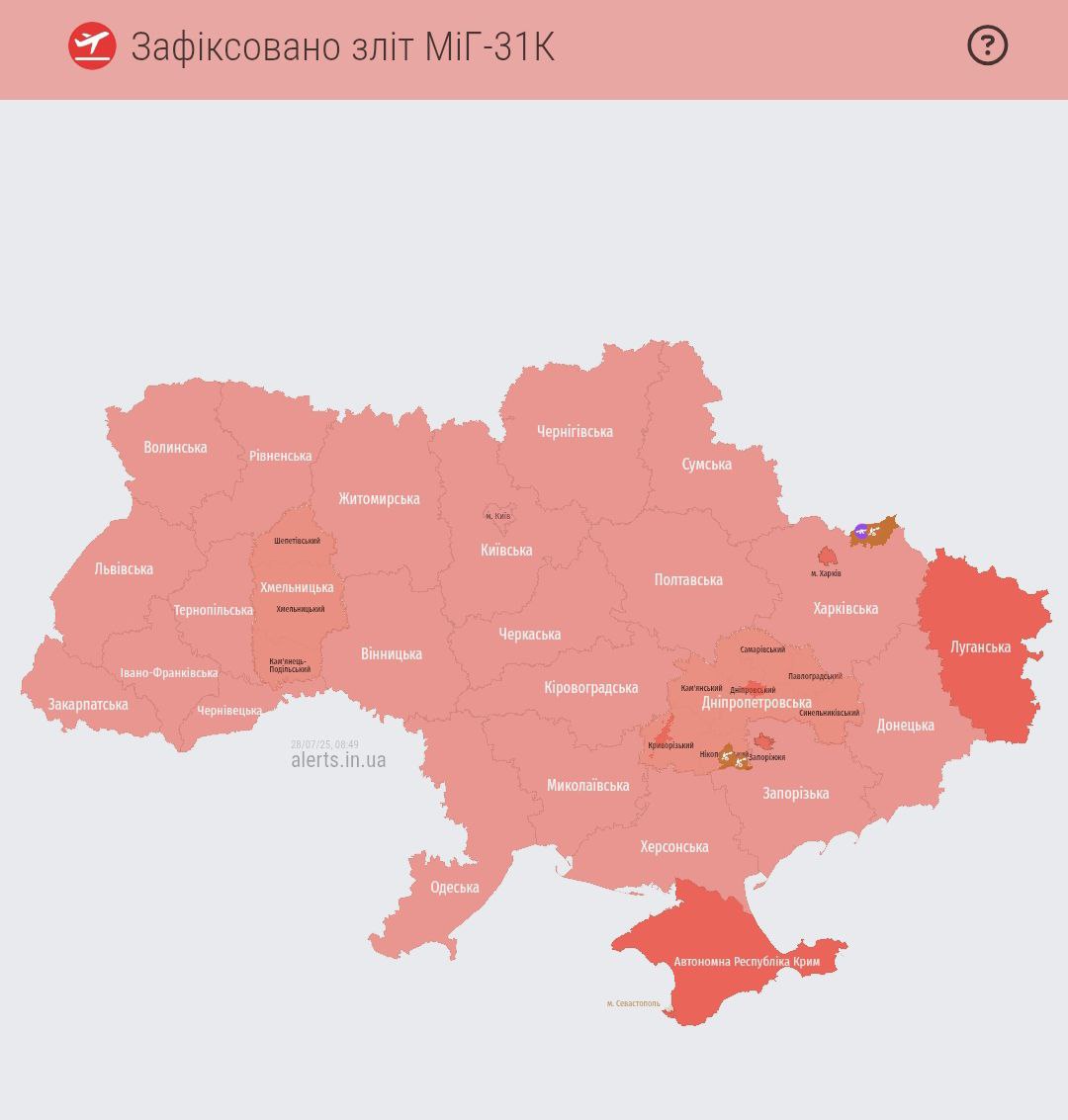 08:51 Новий зліт МіГ-31К та тривога по всій Україні – вже друга за цей ранок.