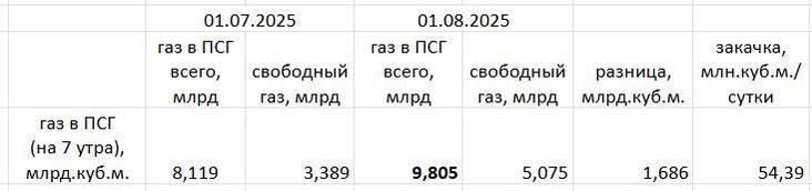 Станом на 1 серпня Україна накопичила в підземних сховищах 5,1 мільярда кубометрів природного газу, який може бути піднятий цієї зими (це так званий вільний газ).