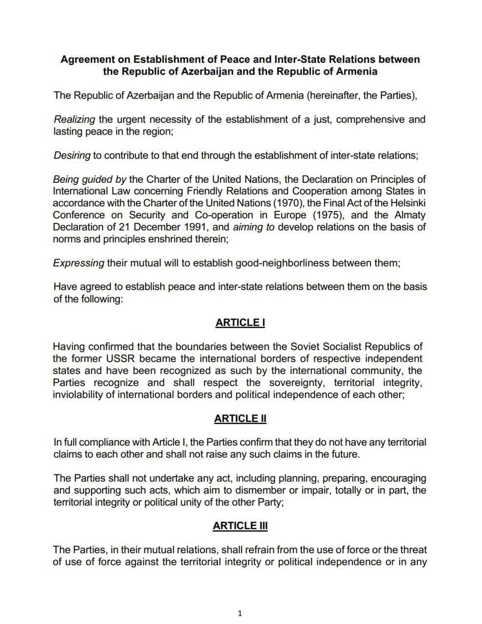 Опубліковано повний текст мирної угоди між Азербайджаном та Вірменією, підписаної на вихідних у Білому домі.