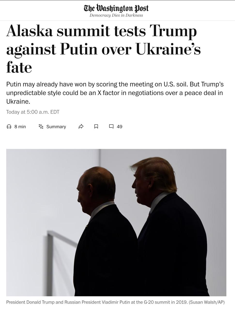 Інше видання, CNN, із посиланням на американського чиновника повідомляє, що Трамп може достроково залишити зустріч із Путіним. За словами співрозмовника журналістів, у розвитку переговорів на Алясці "залишаються всі варіанти", включаючи відхід глави Білого дому, якщо він вважатиме, що Путін не налаштований укласти угоду.
