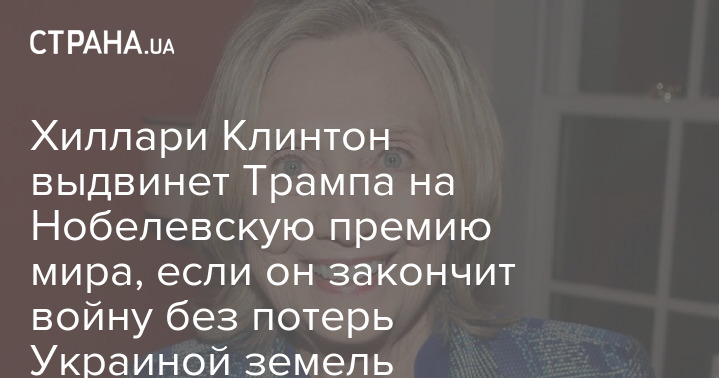 Колишній кандидат у президенти США від Демократичної партії Хілларі Клінтон заявила, що висуне голову Білого дому Дональда Трампа на Нобелівську премію миру, якщо той зможе закінчити війну в Україні без поступок території РФ.