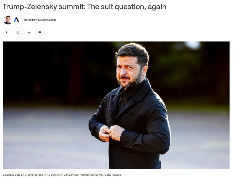 Один із радників Трампа, "частково жартома", сказав, що "це був би гарний знак для світу", якби Зеленський одяг костюм, але додав: "Ми не очікуємо, що він це зробить".