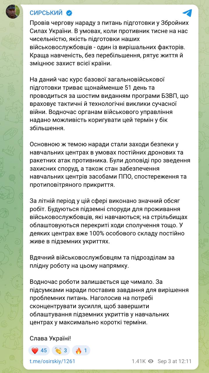 12.24 Після ракетних ударів по навчальним центрам ЗСУ Сирський прозвітував, що в деяких частинах особовий склад уже повністю живе під землею.