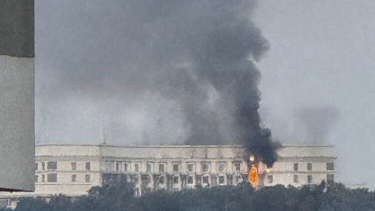Будівля Кабміну, що горить, у Києві. Фото: ЗМІ