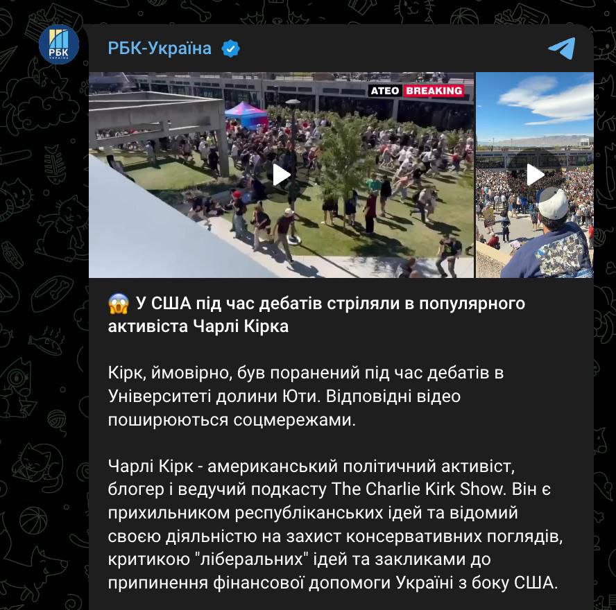 Українські паблики та ЗМІ, розповідаючи сьогодні про замах на Кірка, також згадали його "антиукраїнські" заяви.