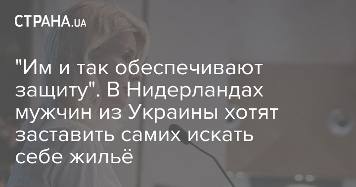 Виконуючи обов'язки міністра у справах притулку і міграції Мона Кейзер заявила, що українські чоловіки, які перебувають у Нідерландах, повинні самостійно подбати про своє житло.