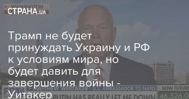 Президент США Дональд Трамп не примушуватиме Україну та Росію до конкретних умов світу, але тиснутиме для завершення війни.