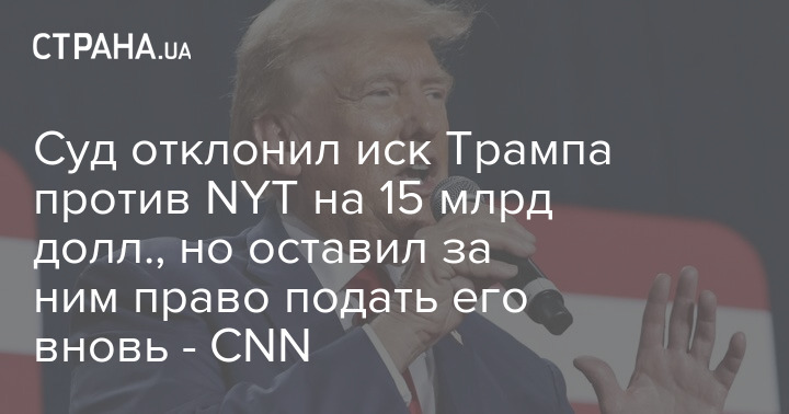 Суд у Флориді відхилив позов президента США Дональда Трампа проти газети New York Times на 15 мільярдів доларів, але залишив його право подати позов знову.