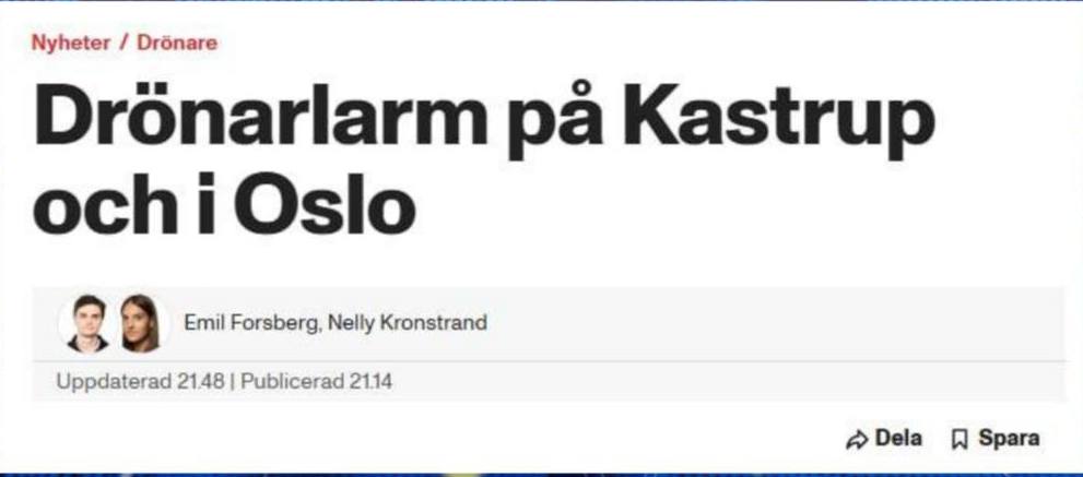 Напередодні, як повідомляло видання AftonBladet, і в Норвегії пролунала тривога через дрони над військовою територією - фортецею Акерсгус в Осло.
