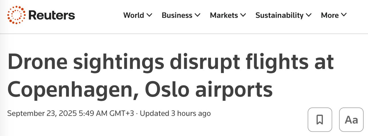 Нагадаємо, напередодні повідомлялося, що міжнародний аеропорт у столиці Данії Копенгагені було закрито через повідомлення про загрозу безпілотників. Заявлялося про тимчасове припинення всіх рейсів.