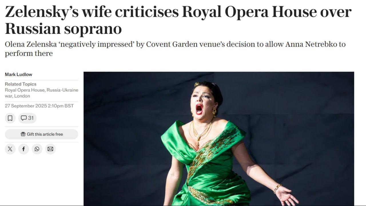 Зеленська вимагає відмінити виступ оперної співачки РФ у Лондонській опері - Telegraph