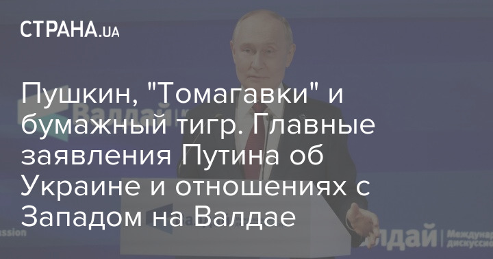На засіданні клубу Валдай у Сочі президент Росії Володимир Путін пройшовся по НАТО та Євросоюзу, переклав відповідальність за війну на Європу, відповів Трампу на "паперового тигра", але заявив про готовність підтримати план президента США щодо Гази. Він повідомив про просування військ на фронті, а також розповів про заробітки на постачання урану до Штатів. Не обійшлося і без цитати із Пушкіна.