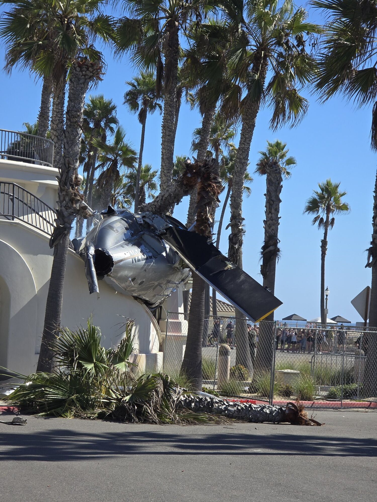 Під час аварії частина уламків впала на поріг готелю "Hyatt", що знаходиться неподалік. Очевидці розповіли, що вертоліт у небі кілька разів перекинувся, а потім стрімко втратив висоту, врізався у пальми та зовнішні сходи пішохідного мосту, що проходить до готелю Hyatt Regency Huntington Beach Resort and Spa.