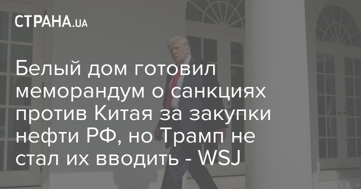 Адміністрація США підготувала меморандум щодо санкцій проти Китаю за закупівлю ним російської нафти. Проте президент Дональд Трамп передумав їх запроваджувати.