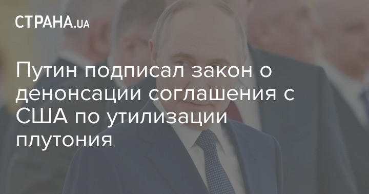 Президент РФ Володимир Путін підписав закон про денонсацію міжурядової угоди зі США "Про утилізацію плутонію, заявленого як плутоній, який не є більш необхідним для цілей оборони, поводження з ним і співробітництво в цій галузі", а також протоколів до нього.