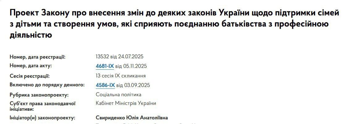 Відповідний статус вказано у картці законопроекту №13532 на сайті Верховної Ради.