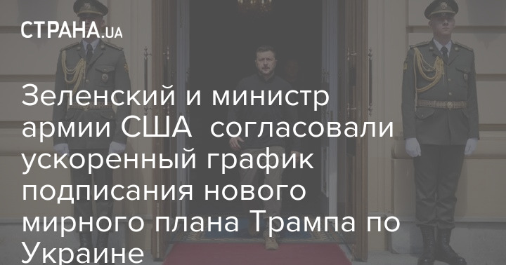 Володимир Зеленський та міністр армії США Ден Дрісколл у четвер узгодили прискорений графік підписання нового мирного плану щодо України, пише Axios з посиланням на американських та українських чиновників. Один із співрозмовників видання назвав затверджений таймлайн за цим планом "жорстким та агресивним".