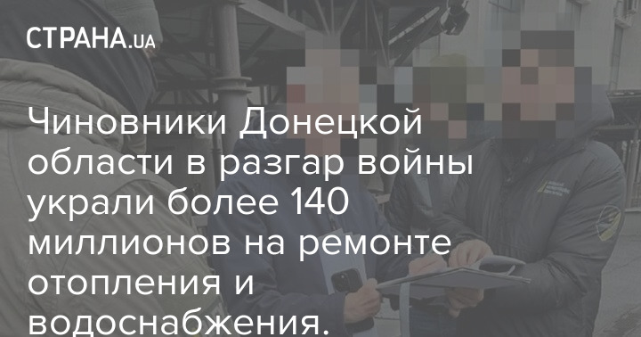 НАБУ та САП викрили організовану групу на чолі з керівником Департаменту житлово-комунального господарства Донецької ОДА, яка вкрала понад 140 мільйонів гривень. Ці кошти призначалися для забезпечення теплом та водою трьох населених пунктів Донбасу.