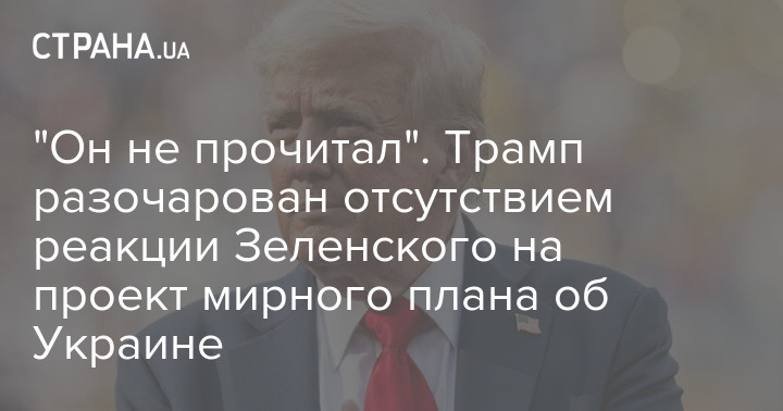 Президент США Дональд Трамп заявив, що розчарований відсутністю реакції українського президента Володимира Зеленського на проект мирної угоди.